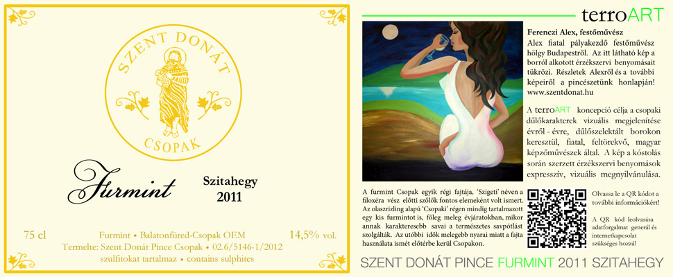 Csopak nekem sokáig Jásdi és a Tamás Pince volt. Jó néhány éve is, mikor családdal ott nyaraltunk, dacolva a kegyetlen koradélutáni napsugarak szította hőséggel és a Kossuth utca egyre meredekebb emelkedésével ezt a két szomszédos pincét céloztam meg, hogy beszerezzem a következő napok innivalóját. Most már tudom, hogy akkor is ott volt kicsit még feljebb a Szent Donát Pince és Étterem. Azóta, hogy néhány fesztiválon találkoztam már velük és boraikkal, biztos vállalnám azt a kis további kaptatót. Egyelőre azonban inkább a bor jött hozzám, egy a Szitahegyről származó furmint személyében.